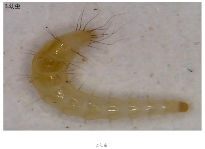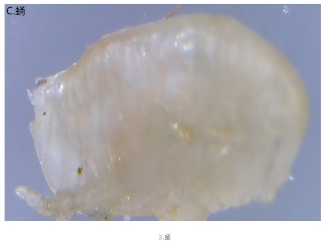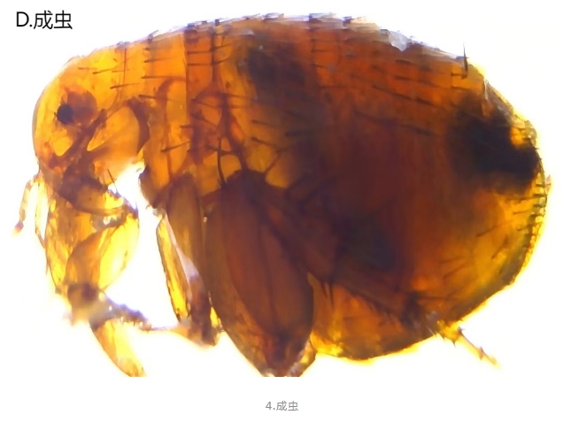 4.肉眼可見(jiàn)快速跳動(dòng)的深褐色小蟲(跳蚤成蟲)。