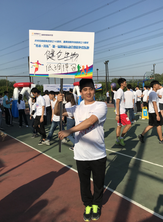 開幕式結(jié)束后,在主持人的帶領(lǐng)下,運(yùn)動(dòng)員們完成了熱身運(yùn)動(dòng),即將到來的,便是令人熱血沸騰的運(yùn)動(dòng)會(huì)比賽了。本公司的第一項(xiàng)比賽項(xiàng)目是考驗(yàn)身體協(xié)調(diào)和團(tuán)隊(duì)協(xié)作的雷霆戰(zhàn)鼓。隨著哨聲響起,六位同事用協(xié)同的步伐和節(jié)奏,小心翼翼地顛動(dòng)著鼓上的氣球,兩位同事在旁蓄力以待,隨時(shí)準(zhǔn)備著把顛落的氣球撿回。緊張,激動(dòng),每一位同事都在努力地完成著比賽。隨著裁判結(jié)束的聲音響起,同事們才放松下來,但是由于疏于運(yùn)動(dòng)的原因,在此項(xiàng)目上我們的成績(jī)并不理想。公司領(lǐng)導(dǎo)詹總此時(shí)為大家鼓舞打氣,讓大家重振士氣,并在接下來的比賽中取得了更好的成績(jī)。