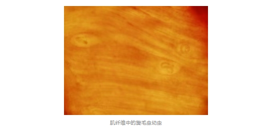 幼蟲期:當(dāng)人們誤食含旋毛蟲的肉制品,肉中的旋毛蟲幼蟲通過人體的胃腸道進入小腸并發(fā)育為成蟲。
