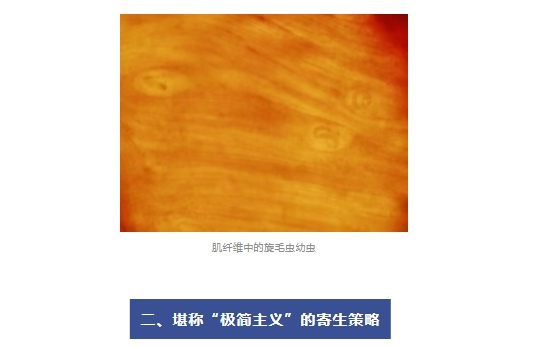 旋毛蟲的生活史極其簡(jiǎn)單,不需要土壤、媒介或中間宿主等完成生活史,而能在同一宿主的不同部位完成“變身”。