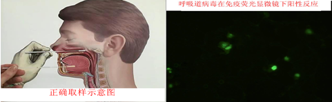 檢測原理:熒光素(FITC)標(biāo)記的單克隆抗體與病毒抗原結(jié)合。 檢測方法:直接免疫熒光法,一步染色,減少非特異性反應(yīng)。