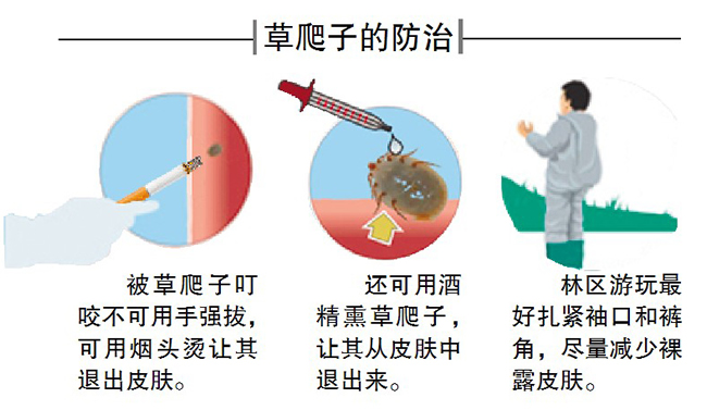 醫(yī)生提醒,為防止草爬子咬傷,市民到草叢、山林等地游玩后要及時(shí)檢查身體四肢、關(guān)節(jié)處等,如感覺皮下疼痛并有米粒大黑點(diǎn)要及時(shí)就醫(yī)。即使草爬子不帶病毒,不及時(shí)將其清出也會(huì)引起皮膚紅腫。